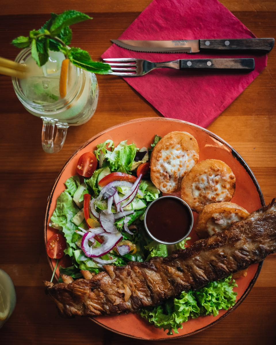 Jeśli jeszcze nie mieliście okazji koniecznie spróbujcie: „Steku z rostbefu a'la Tępa Strzała w Zadzie Bizona”, czyli grillowanego steku z rostbefu z dodatkiem zielonego pieprzu, ziemniakami zapiekanymi w plastrach z serem rokpol, sałatką wegetariańską i sosem Worcester.